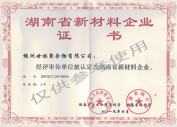 熱烈祝賀株洲世林聚合物有限公司被認(rèn)定為湖南省新材料企業(yè)